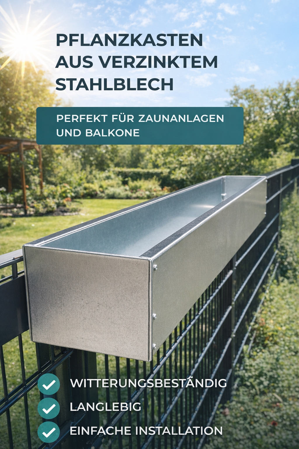 BLUMENKASTEN VERZINKT, QUERSCHNITT 16 x 18 cm, LÄNGEN 50 - 100 cm