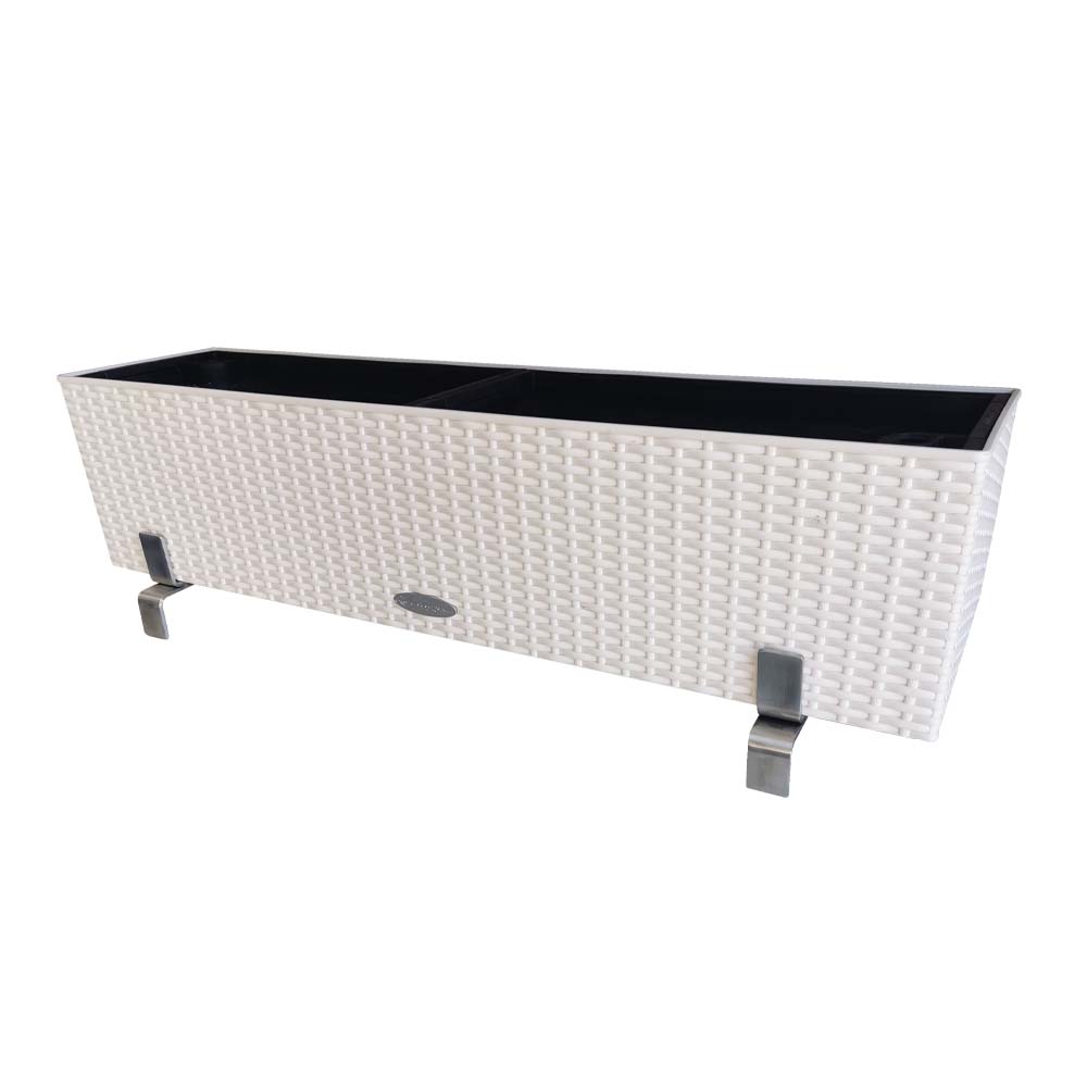 Durch die Brüstungshalterungen entsteht ein Luftspalt von ca. 8 mm unter dem Kasten. Dies begünstigt positiv die Luftzirkulation unterhalb des Kastens, sowie den Wasserablauf.