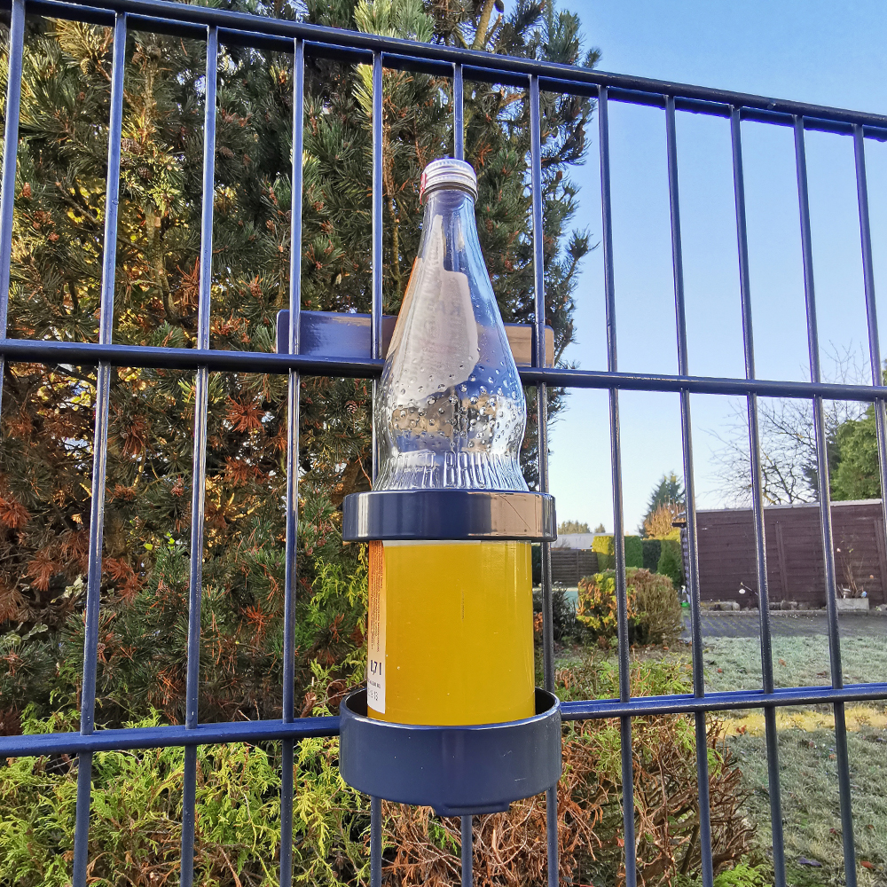 Flaschenhalterungen direkt am Zaun. Ideal z. B. für Sportplätze, beim Sonnen oder bei anderen Aktivitäten im Garten, beim Grillen usw. Ihr Getränk ist immer in greifbarer Nähe.