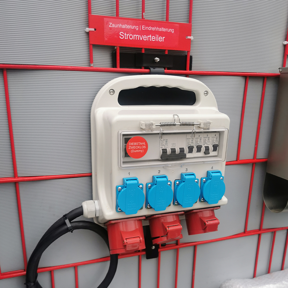 - Der Stromverteiler hat ein stabiles Gehäuse und verfügt über einen Tragegriff.