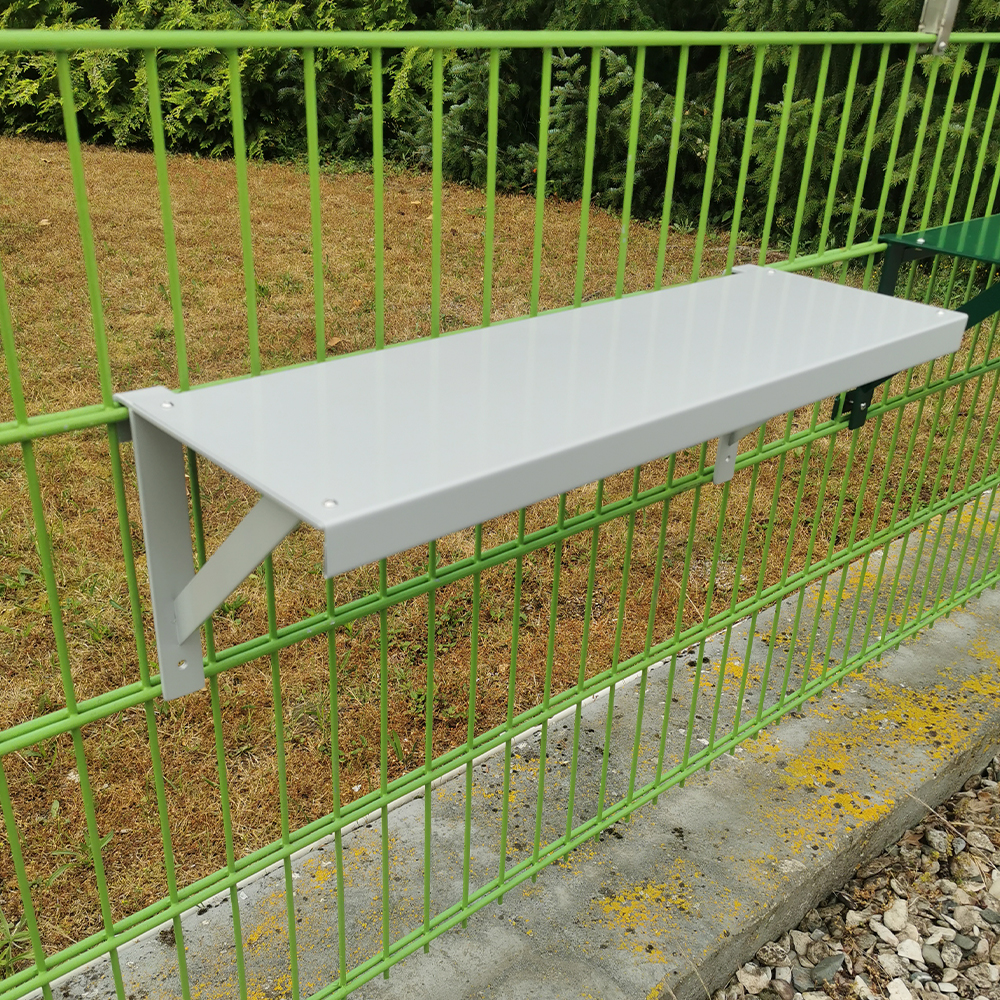 Das Zaunregal kann flexibel an jedem Zaunfeld eingehangen werden.
